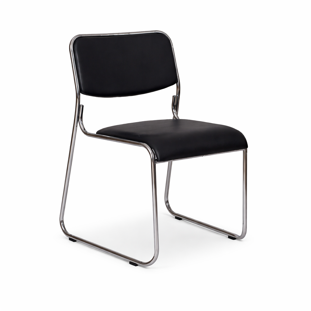 Modelo: Cadeira Office Preta Base Fixa Cromada Assento: Estrutura em Madeira Revestida em PU Base: Aço Cromado