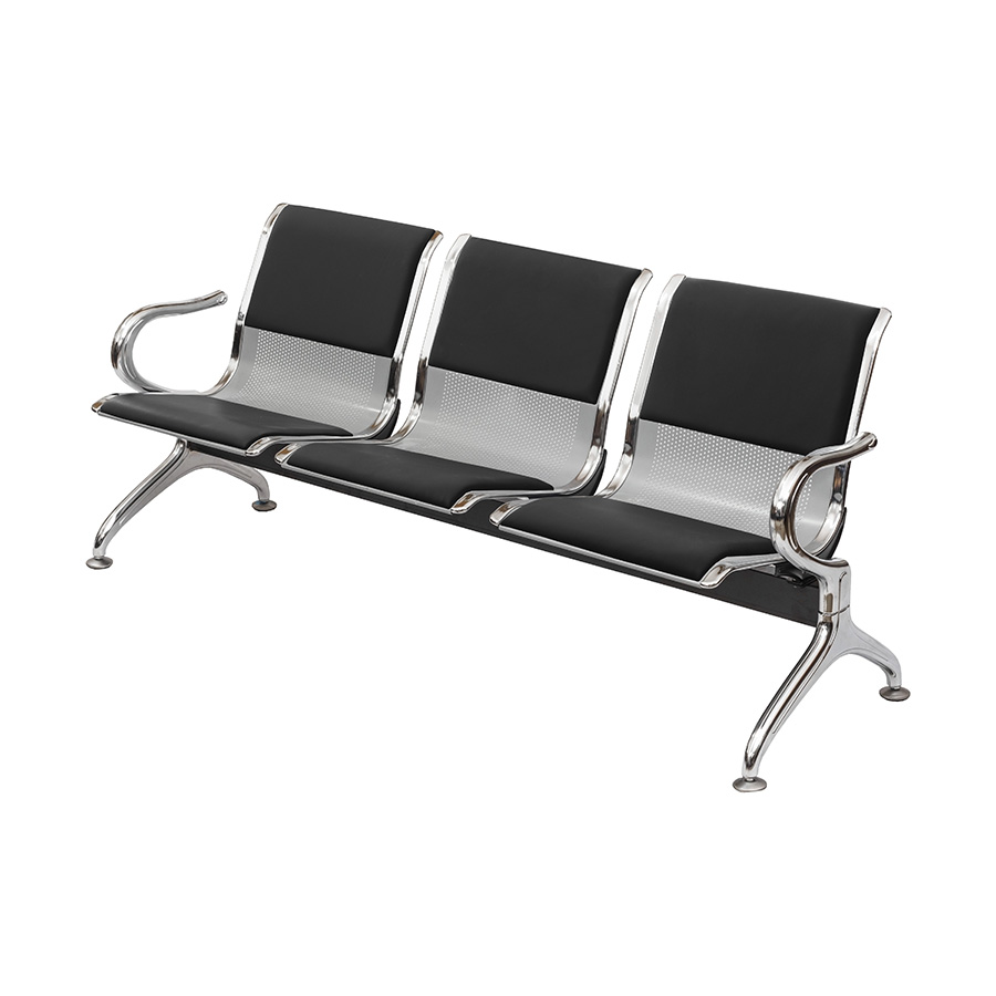 Modelo: Longarina aeroporto em aço cromado e chapa perfurada com assento e encosto estofado