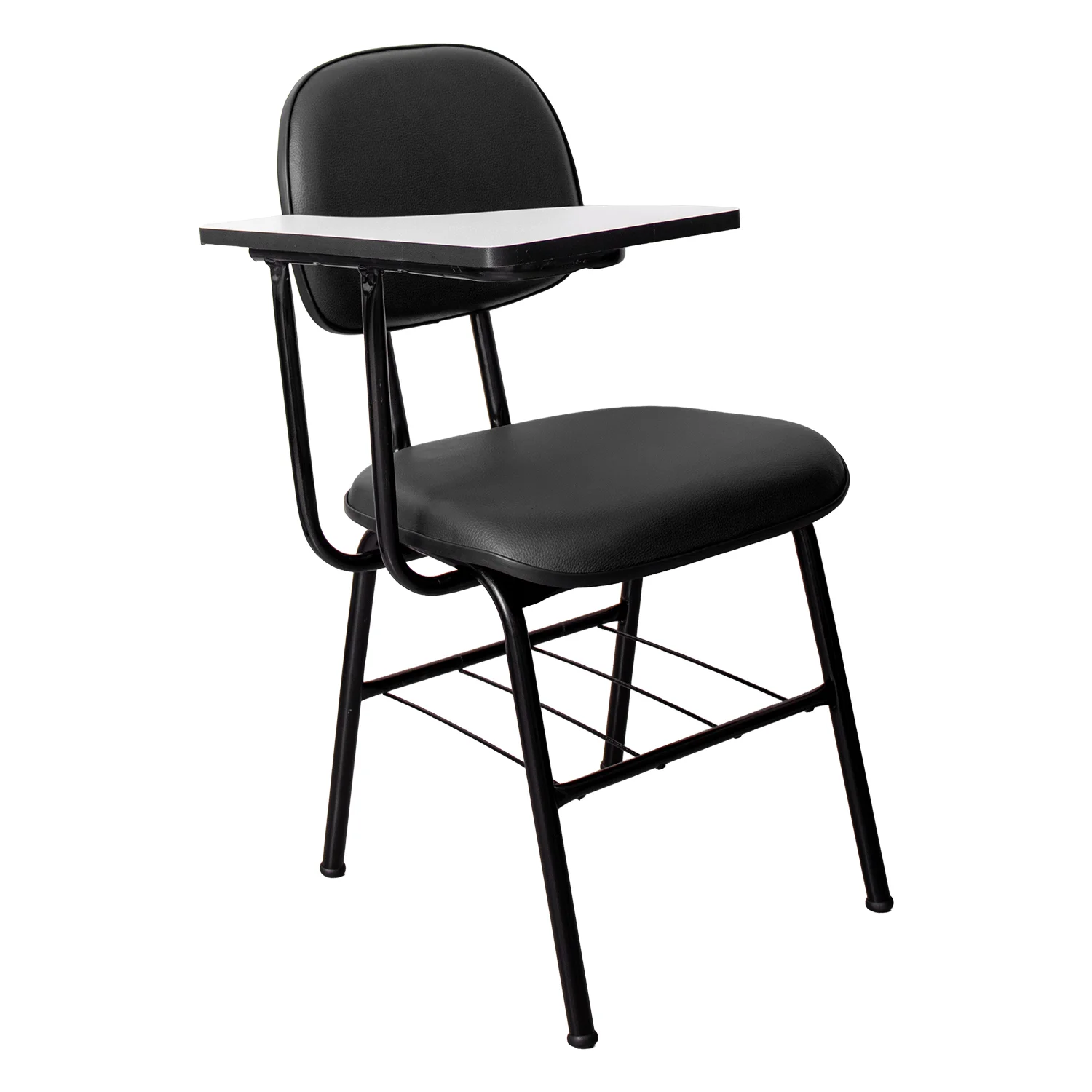 Carteira Universitária Escolar Secretária Estofada Preta com Prancheta MDF Branco - 73454 - Casa das Cadeiras Goiânia