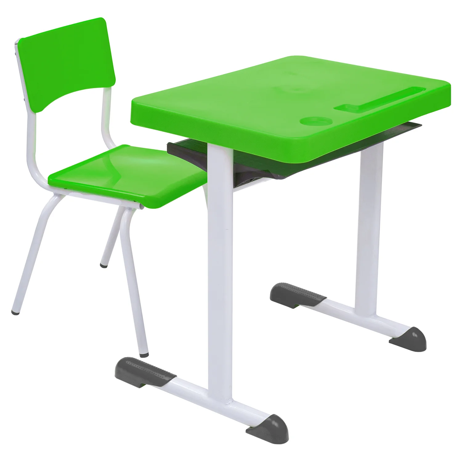 Fabricado em polipropileno injetado de alta durabilidade, com superfície lisa e fácil de limpar. Os cantos são arredondados, garantindo segurança no uso escolar.