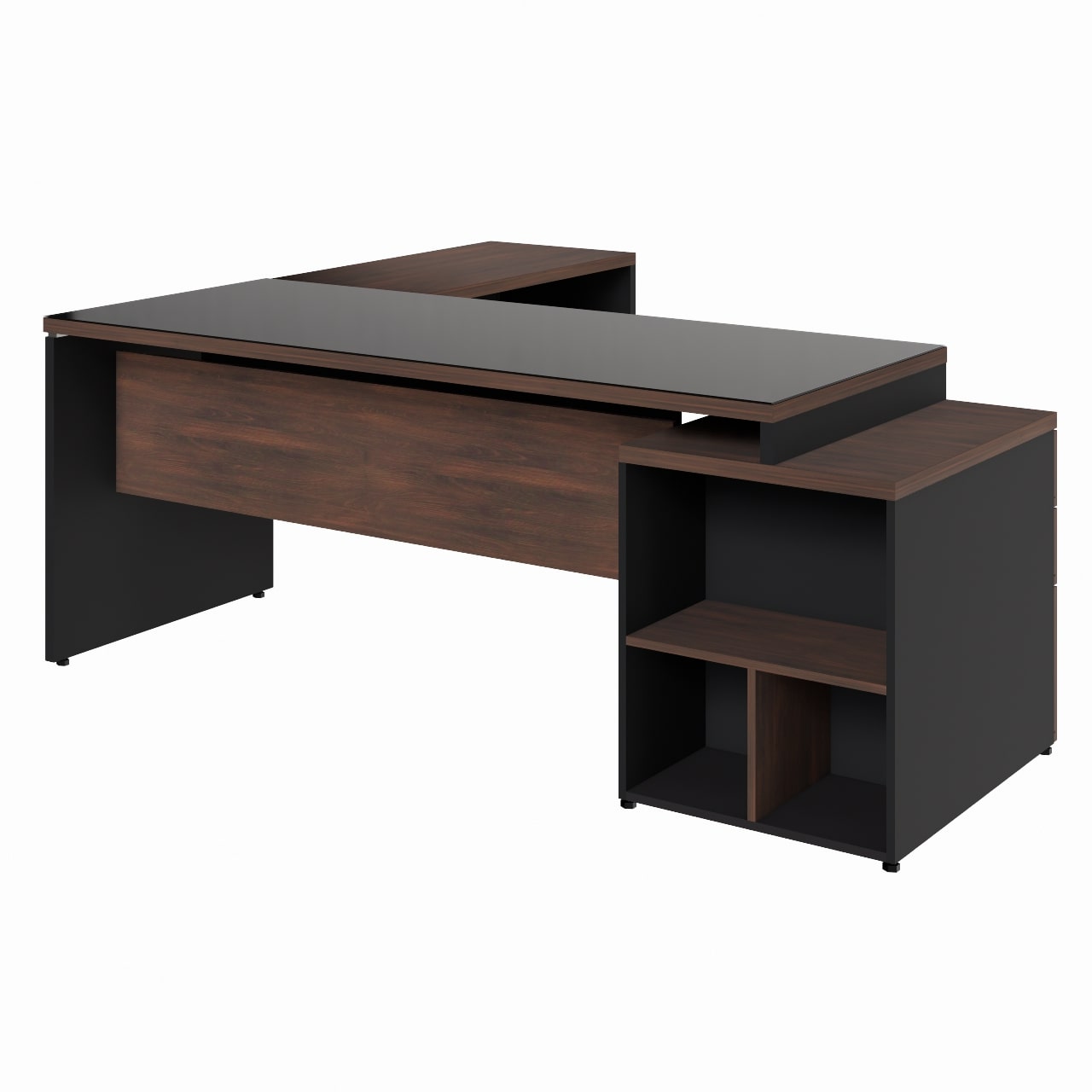Mesa de Escritório em 'L' com Vidro Fumê - 1,92x1,60 - Marsala/Preto - 23486 - Casa das Cadeiras Goiânia